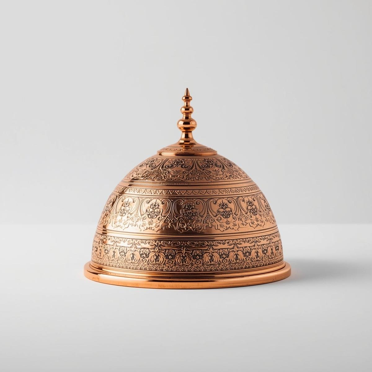 Dome Copper Serving Platter | Table Serveware Serve with Style in this beautiful Copper Serving platter. The outside of the Dome lid is of pure copper engraved with a symmetric pattern design and the inner is stainless steel
